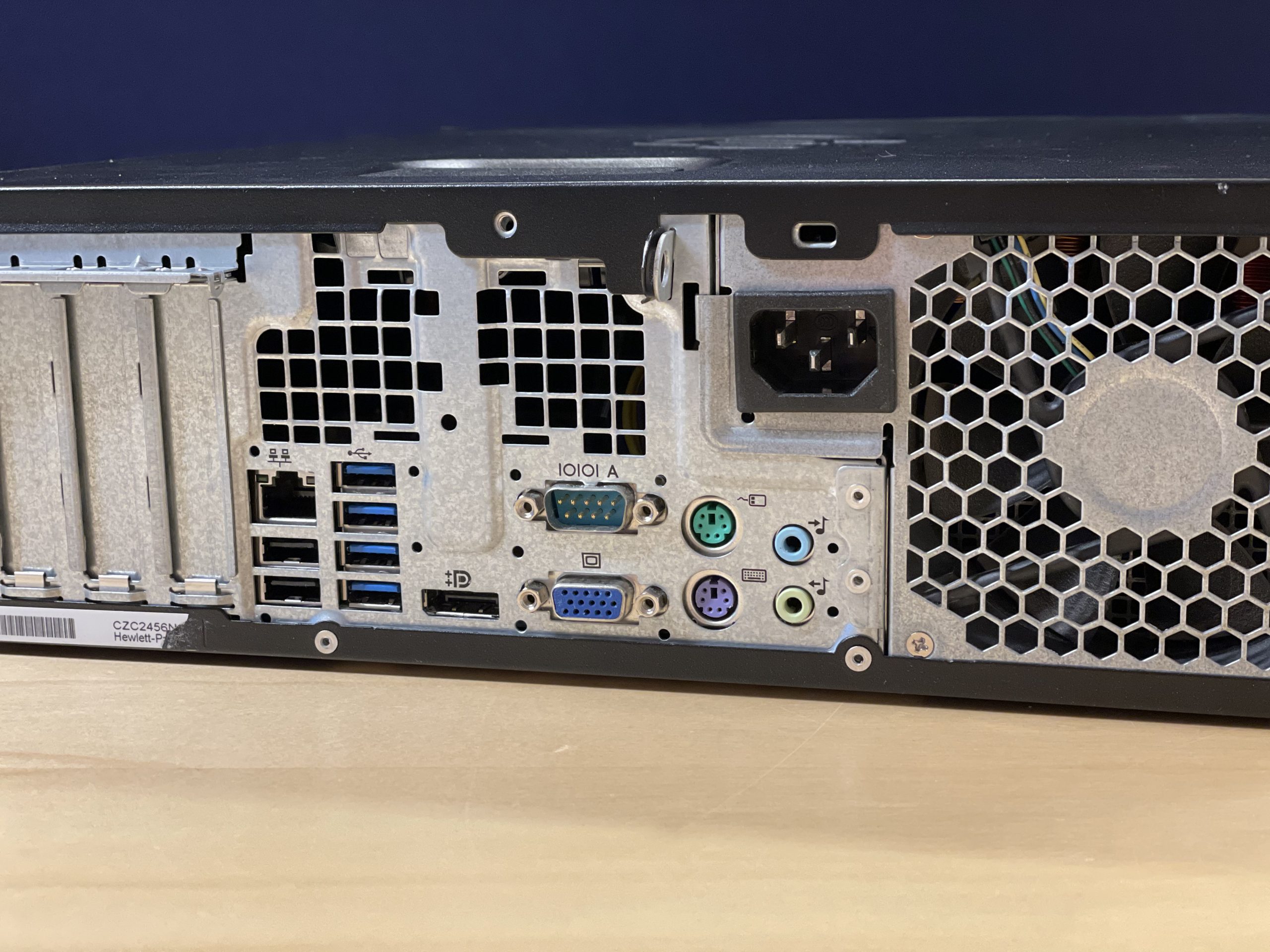 Porter bak: 4x USB 3, 2 USB, Nettverk, 2x DisplayPort, DVI, lyd inn/ut, VGA, COM port